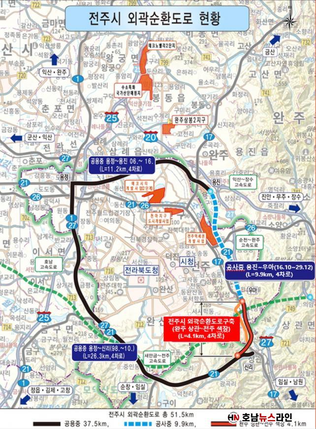 ÇöÀç±îÁö ¿ÏÁÖ ½Å¸®~ÀüÁÖ ¿ëÁ¤~¿ëÁøÀ» ÀÕ´Â 37.5km ±¸°£Àº »ç¾÷ºñ 7,149¾ï¿øÀ» µé¿© °³Åë ¿î¿µ ÁßÀ̸ç, ÀüÁÖ ¿ëÁø~¿ì¾Æ(»öÀ嵿) 9.9km ±¸°£Àº »ç¾÷ºñ 3964¾ï ¿øÀ» µé¿© 2029³â ÁذøÀ» ¸ñÇ¥·Î °ø»ç°¡ ÁøÇà ÁßÀÌ´Ù. ÇÏÁö¸¸ ¿ÏÁÖ »ó°ü~ÀüÁÖ »öÀå ±¸°£Àº ¾ÆÁ÷ Âø¼ö ´Ü°è¿¡ À̸£Áö ¸øÇØ ¿Ü°û¼øÈ¯¸ÁÀÇ ±â´ÉÀÌ ¹ÝÂÊ¿¡ ±×Ä¡°í ÀÖ´Ù´Â ÁöÀûÀÌ À̾îÁ® ¿Ô´Ù.