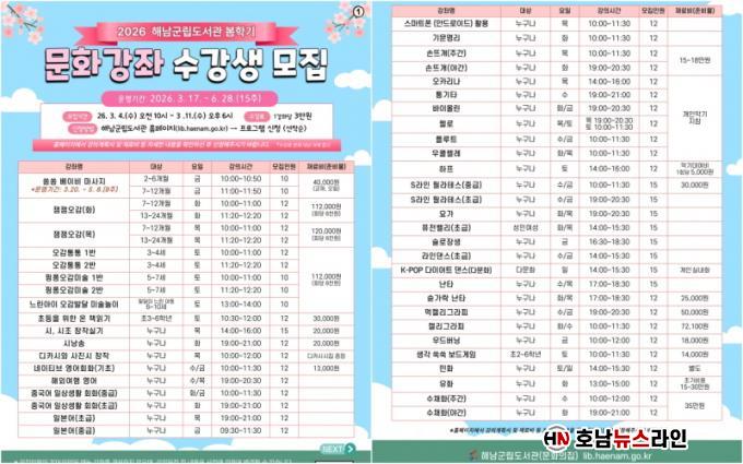 ¼ö°½ÅûÀº 2026³â 3¿ù 4ÀϺÎÅÍ 3¿ù 11ÀϱîÁö ÇØ³²±º¸³µµ¼°ü ´©¸®ÁýÀ» ÅëÇØ ¿Â¶óÀÎ Á¢¼ö·Î ÁøÇàµÈ´Ù.ƯÈ÷ Àα⠰ÁÂÀÇ °æ¿ì Á¶±â ¸¶°¨µÇ¹Ç·Î, ºü¸¥ ½ÅûÀÌ ¿ä±¸µÈ´Ù.