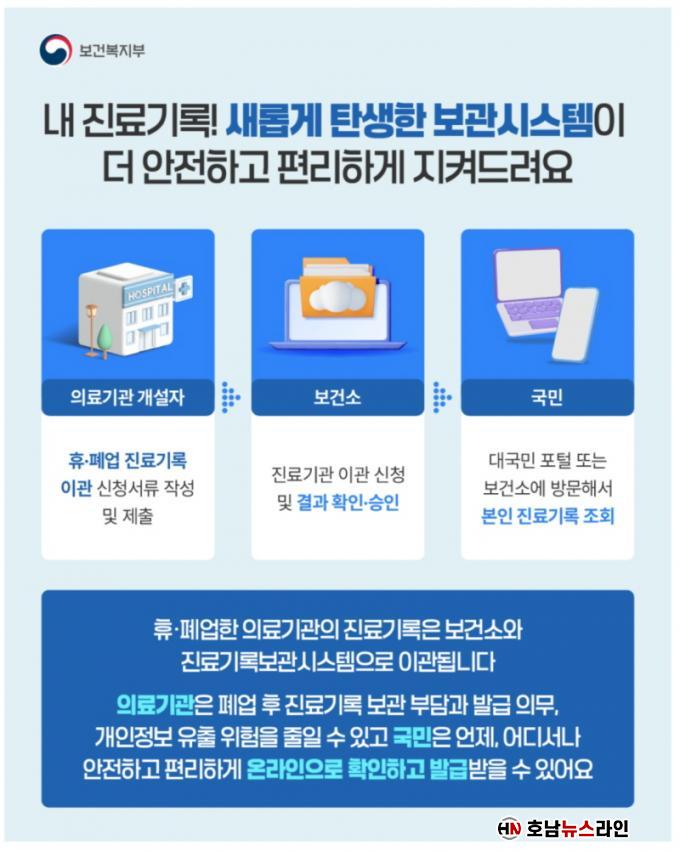ÈÞ¡¤Æó¾÷ ÀÇ·á±â°ü Áø·á±â·Ïº¸°ü½Ã½ºÅÛÀº º´¡¤ÀÇ¿øÀÌ ¹®À» ´Ý¾Æµµ ȯÀÚÀÇ Áø·á±â·ÏÀ» ¾ÈÀüÇÏ°Ô º¸°üÇϰí, ÇÊ¿ä½Ã ¿Â¶óÀÎÀ¸·Î ¿¶÷Çϰųª »çº»À» ¹ß±Þ¹ÞÀ» ¼ö ÀÖµµ·Ï Áö¿øÇÏ´Â ¼ºñ½º´Ù. Áö³ÇØ 7¿ù 21ÀϺÎÅÍ º»°Ý ½ÃÇàµÆ´Ù.