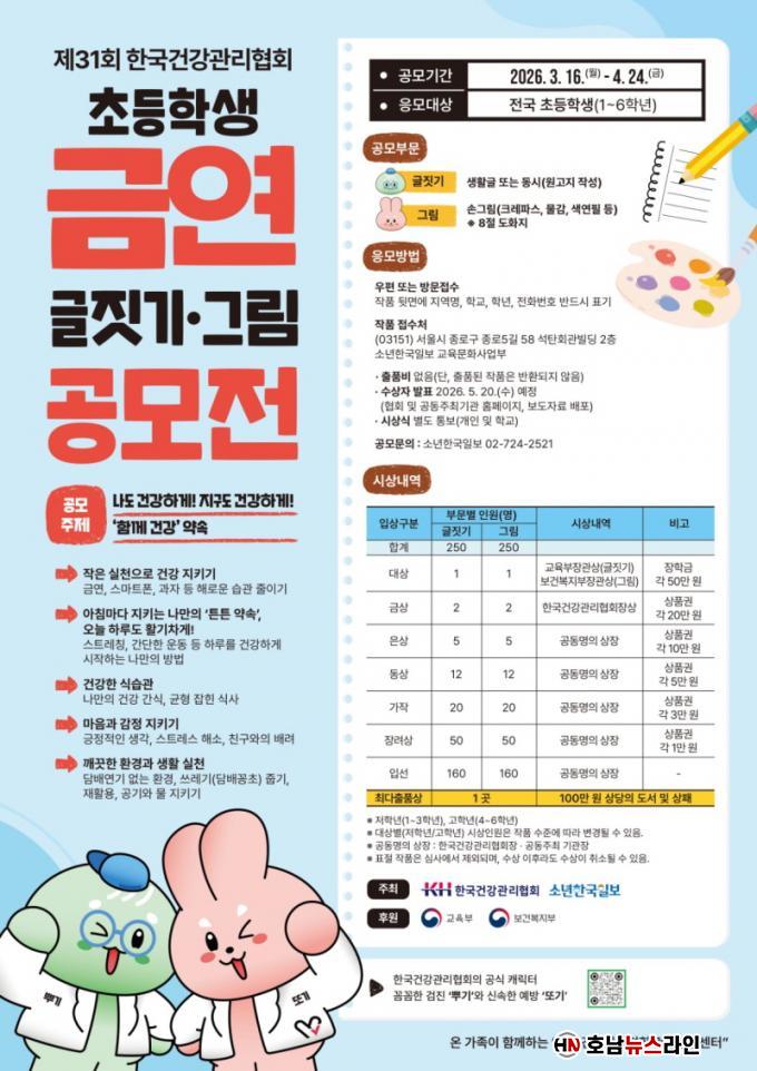 ¿ÃÇØ °ø¸ð ÁÖÁ¦´Â¡®³ªµµ °Ç°ÇϰÔ! Áö±¸µµ °Ç°ÇϰÔ! ÇÔ²² °Ç° ¾à¼Ó¡¯À¸·Î, Âü°¡ ÇлýµéÀº ±Ý¿¬ ½ÇõÀ» ºñ·ÔÇØ ¿Ã¹Ù¸¥ ½Ä½À°ü, ±ÔÄ¢ÀûÀÎ ¿îµ¿, ±àÁ¤ÀûÀÎ ¸¶À½°¡Áü, ±ú²ýÇÑ È¯°æÀ» ÁöŰ´Â »ýȰ½À°ü µîÀ» ±ÛÀ̳ª ±×¸²À¸·Î ÀÚÀ¯·Ó°Ô Ç¥ÇöÇÏ¸é µÈ´Ù.