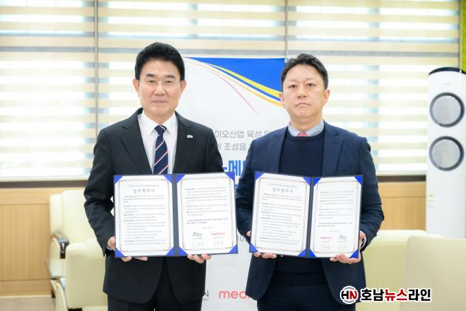 ¸Þµð¾Ó½º ¹Ú¼öÂù ´ëÇ¥ÀÌ»ç´Â ¡°À̹ø Çù¾àÀº Áö¿ª»çȸ¿Í ÇÔ²² »ó»ý Çù·ÂÀÇ Àǹ̸¦ ´ã°í ÀÖ´Ù¡±¸ç ¡°¾ÕÀ¸·Îµµ ¡®¿Ã°ðÀº¡¯ ±â¾÷ À̳äÀ» ¹ÙÅÁÀ¸·Î ¼øÃµ½Ã¿Í Çù·ÂÇØ Áö¿ª °æÁ¦ Ȱ¼ºÈ¿Í Áö¼Ó °¡´ÉÇÑ »ê¾÷ ¹ßÀü¿¡ ±â¿©ÇØ ³ª°¡°Ú´Ù¡±°í ¸»Çß´Ù.
