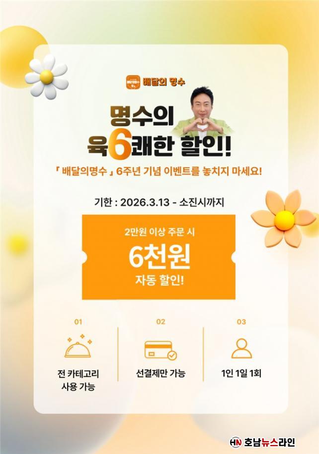 À̹ø À̺¥Æ®´Â ¹è´ÞÀǸí¼ö ÀÌ¿ë ¼ÒºñÀÚ¸¦ ´ë»óÀ¸·Î ÁøÇàµÇ¸ç, À̺¥Æ® ±â°£ µ¿¾È 2¸¸ ¿ø ÀÌ»ó ÁÖ¹® ½Ã 6,000¿øÀ» Áï½Ã ÇÒÀιÞÀ» ¼ö ÀÖ´Ù. ÇÒÀÎÀº ÇÏ·ç 1ȸ ÇÑÁ¤À¸·Î Á¦°øµÇ¸ç ¼±°áÁ¦ ÁÖ¹®¿¡ ÇÑÇØ Âü¿© °¡´ÉÇÏ´Ù.