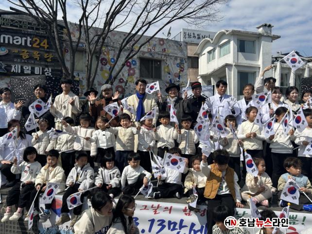 À̳¯ ´ëÇü űر⸦ ¼±µÎ·Î Çà»ç¿¡ Âü¿©ÇÑ Ã»¼Ò³â µî ½Ã¹ÎµéÀº °¢ÀÚ Å±ر⸦ µé°í ½ÅÈï°í¿¡¼ dz³²¹® ±¤Àå±îÁö ¡®´ëÇѵ¶¸³ ¸¸¼¼¡¯¸¦ ¿ÜÄ¡¸ç ±×³¯ÀÇ ¶ß°Å¿î ÇÔ¼º°ú űر⠹°°áÀ» ÀçÇöÇß´Ù.