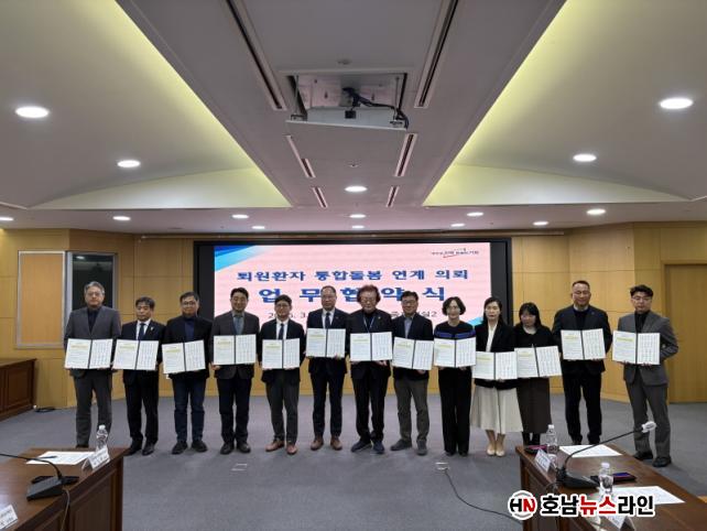 À̹ø Çù¾àÀº º´¿ø Ä¡·á¸¦ ¸¶Ä£ ȯÀÚ°¡ Åð¿ø ÀÌÈÄ Áö¿ª»çȸ¿¡¼ ¾ÈÁ¤ÀûÀ¸·Î »ýȰÇÒ ¼ö ÀÖµµ·Ï ÀǷᡤµ¹º½¡¤º¹Áö ¼ºñ½º¸¦ ¿¬°èÇÏ´Â Çù·Âü°è¸¦ ±¸ÃàÇϱâ À§ÇØ ¸¶·ÃµÆ´Ù.