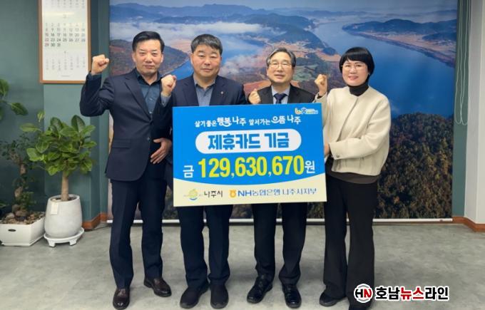 °»ó±¸ ³ªÁÖ ºÎ½ÃÀåÀº ¡°±â±ÝÀº ½Ã¹Î º¹Áö ÁõÁø¿¡ Áß¿äÇÑ Àç¿øÀ¸·Î Ȱ¿ëµÉ °Í¡±À̶ó¸ç ¡°¸Å³â Á¦ÈÞÄ«µå ±â±Ý°ú ´õºÒ¾î Áö¿ª»çȸ ¹ßÀüÀ» À§ÇÑ Çù·Â ÆÄÆ®³Ê·Î¼ ÇÔ²²ÇØÁØ NH³óÇù ³ªÁÖ½ÃÁöºÎ¿¡ °¨»çÀÇ ¸»À» ÀüÇÑ´Ù¡±°í ÀüÇß´Ù.