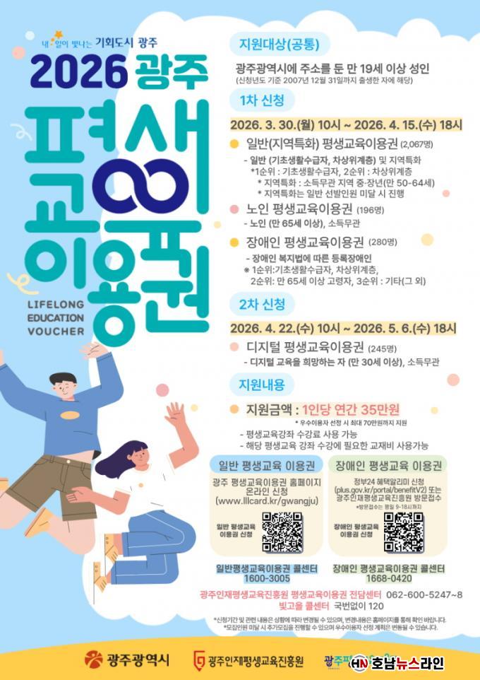 ÀϹݡ¤µðÁöÅС¤³ëÀÎ ½ÅûÀº ¡®Æò»ý±³À°ÀÌ¿ë±Ç¡¯ ´©¸®Áý(www.lllcard.kr/gwangju)¿¡¼ ½ÅûÇÒ ¼ö ÀÖÀ¸¸ç, Àå¾ÖÀÎÀÌ¿ë±ÇÀº ¡®Á¤ºÎ24¡¯ ´©¸®Áý(plus.gov.kr)À» ÅëÇØ ¿Â¶óÀÎÀ¸·Î Á¢¼öÇÏ¸é µÈ´Ù. Àå¾ÖÀÎÀÌ¿ë±ÇÀº ½ÅûÀÚ ÆíÀǸ¦ °í·ÁÇØ (Àç)±¤ÁÖÀÎÀçÆò»ý±³À°ÁøÈï¿øÀ» ¹æ¹®ÇØ Á¢¼öÇÏ´Â °Íµµ °¡´ÉÇÏ´Ù.