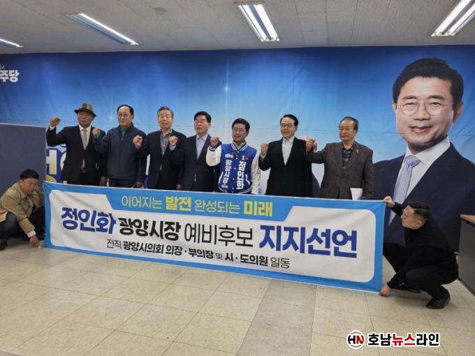 ÀüÁ÷ ÀÇÀå´ÜÀ» Æ÷ÇÔÇÑ 11ÀÎÀÇ ÀüÁ÷ ½ÃµµÀÇ¿øµéÀº ÁöÁö ¼±¾ð¹®À» ÅëÇØ ¡°±¤¾çÀº Áö±Ý Àü³²¡¤±¤ÁÖ ÅëÇÕÆ¯º°½Ã¶ó´Â °Å´ëÇÑ º¯È¿Í ¹Ì·¡»ê¾÷ ´ëÀüȯÀ̶ó´Â ½Ã´ëÀû °úÁ¦ ¾Õ¿¡ ¼ ÀÖ´Ù¡±¸ç ¡°ÀÌ ÁßÂ÷´ëÇÑ ½Ã±â¿¡ ½ÃÇàÂø¿À¸¦ °ÞÀ» ¿©À¯°¡ ¾ø±â¿¡ °ËÁõµÈ ¸®´õ½ÊÀÌ Àý½ÇÇÏ´Ù¡±°í ÁöÁö ¹è°æÀ» ¹àÇû´Ù.
