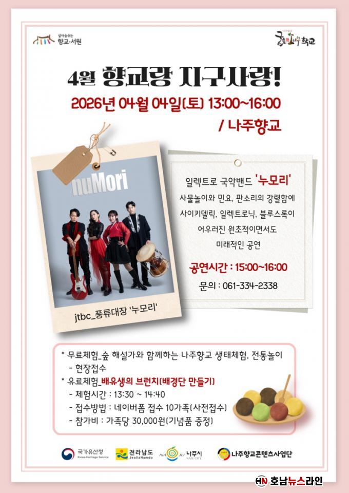 ÇÑÆí ¡®³ªÁÖÇâ±³ ±ÁÀº ¼Ò³ª¹«Çб³¡¯´Â ±¹°¡À¯»êû°ú Àü¶ó³²µµ, ³ªÁֽð¡ ÁÖÃÖÇÏ°í ³ªÁÖÇâ±³ÄÜÅÙÃ÷»ç¾÷´ÜÀÌ À§Å¹¹Þ¾Æ ¿î¿µÇÏ´Â Áö¿ª ¹®ÈÀ¯»ê Ȱ¿ë»ç¾÷À¸·Î 4¿ùºÎÅÍ 11¿ù±îÁö üÇè°ú °ø¿¬, ¼÷¹ÚÇü ÇÁ·Î±×·¥ µî ´Ù¾çÇÑ ÄÜÅÙÃ÷¸¦ ¼±º¸ÀÏ °èȹÀÌ´Ù.