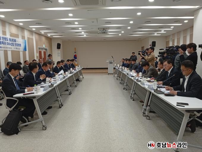 ÇÑÆí, À̳¯ °£´ãȸ¿¡´Â ´õºÒ¾î¹ÎÁÖ´ç ÇѺ´µµ ¿ø³»´ëÇ¥¿Í À¯µ¿¼ö ƯÀ§ À§¿øÀåÀ» ºñ·ÔÇÑ ´ç ÁöµµºÎ, »ê¾÷ºÎ ±âȹÁ¶Á¤½ÇÀå, Àü³²µµ °æÁ¦ºÎÁö»ç, Áö¿ª ¼®À¯ÈÇÐ ±â¾÷ °ü°èÀÚµéÀÌ Âü¼®ÇØ À§±â ±Øº¹ ¹æ¾ÈÀ» ½Éµµ ÀÖ°Ô ³íÀÇÇß´Ù.