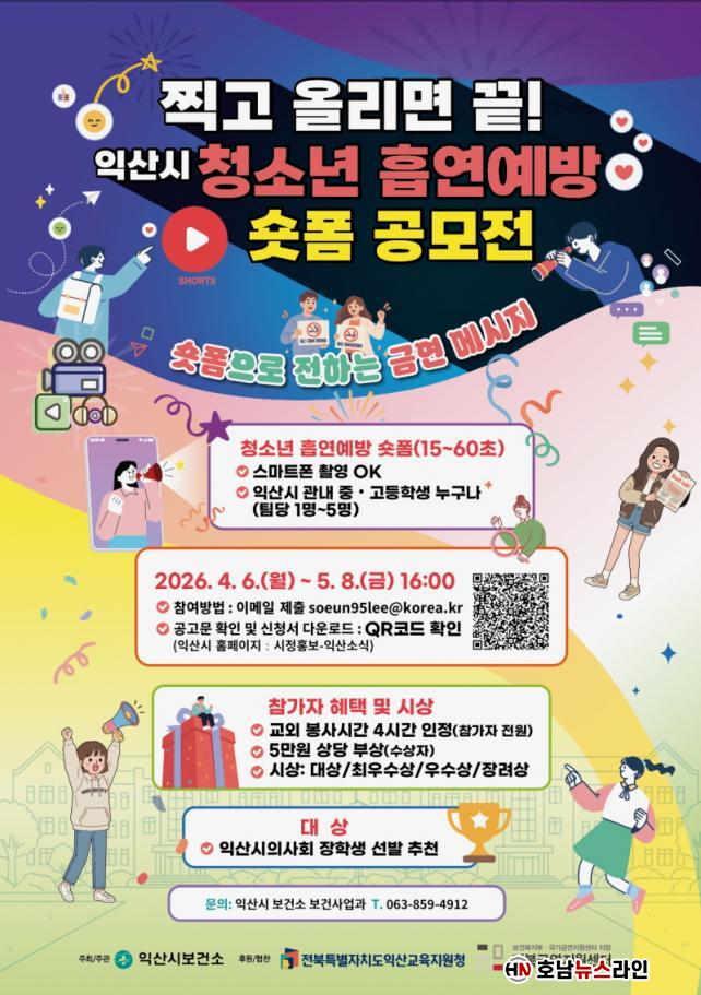 °ø¸ð ÁÖÁ¦´Â û¼Ò³â Èí¿¬ ¿¹¹æ°ú ±Ý¿¬ÀÇ Á߿伺À» ¾Ë¸®´Â ³»¿ëÀ¸·Î, ÀÍ»ê½Ã Áö¿ª Áß¡¤°íµîÇлýÀÌ¸é °³ÀÎ ¶Ç´Â ÆÀ ´ÜÀ§·Î Âü¿©ÇÒ ¼ö ÀÖ´Ù. Á¢¼ö´Â ÀüÀÚ¿ìÆíÀ» ÅëÇØ ÁøÇàµÇ¸ç, ½É»ç¸¦ °ÅÃÄ ¿ì¼öÀÛÀ» ¼±Á¤ÇÒ ¿¹Á¤ÀÌ´Ù. °ø¸ðÀü °ü·Ã ÀÚ¼¼ÇÑ »çÇ×Àº ÀÍ»ê½Ã ´©¸®Áý ³» ÀÍ»ê¼Ò½Ä¿¡¼ È®ÀÎÇÒ ¼ö ÀÖ´Ù.