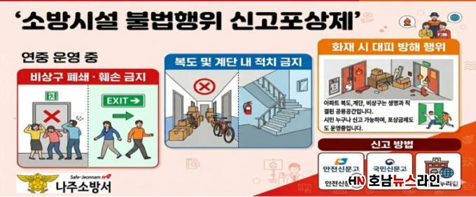 ¼Ò¹æ½Ã¼³ ºÒ¹ýÇàÀ§ ½Å°íÆ÷»óÁ¦´Â ºñ»ó±¸ Æó¼â µî ¼Ò¹æ½Ã¼³¿¡ °¡ÇØÁö´Â ºÒ¹ýÇàÀ§¸¦ ½Å°íÇÏ´Â °æ¿ì ½Å°íÀÚ¿¡°Ô °ü·Ã ±ÔÁ¤¿¡ µû¶ó Æ÷»ó±ÝÀÌ Áö±ÞµÈ´Ù. ¼Ò¹æ½Ã¼³ °ü¸®¿¡ ´ëÇÑ ½Ã¹ÎÀÇ °æ°¢½ÉÀ» °íÃëÇÏ°í ¾ÈÀüÀǽÄÀ» È®»ê½ÃÄÑ ÈÀç ÇÇÇØ¸¦ ÃÖ¼ÒÈÇÏ´Â µ¥ ½ÃÇà ¸ñÀûÀÌ ÀÖ´Ù.