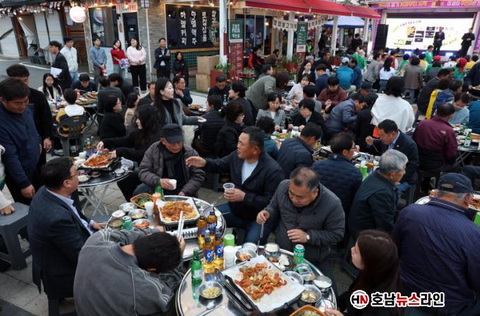 ¸Ô°Å¸® ºÎ¹®¿¡¼µµ Çà»çÀå ¿±â´Â ¶ß°Å¿ü´Ù. ÇöÀå¿¡¼´Â ºÒÇâ°¡µæ ¿¬ÅººÒ°í±â°¡ ¹æ¹®°´µéÀÇ ÀÔ¸ÀÀ» »ç·ÎÀâÀ¸¸ç ³ôÀº Àα⸦ ²ø¾ú´Ù. ¿¬ÅººÒ ƯÀ¯ÀÇ ±íÀº dz¹Ì¿Í µû¶æÇÑ ¸Ô°Å¸®´Â Çà»çÀåÀ» ãÀº ¹æ¹®°´µé¿¡°Ô Å« ¸¸Á·À» ¾È°å°í, ½ÇÁ¦ ÆÇ¸Å ¸ÅÃâ·Îµµ À̾îÁö¸ç Áö¿ª»ó±Ç Ȱ¼ºÈ¿¡µµ ±àÁ¤ÀûÀÎ ¼º°ú¸¦ º¸¿´´Ù. °¡Á· ´ÜÀ§ ¹æ¹®°´°ú °ü±¤°´µéÀº °ø¿¬°ú ÇÔ²² ´Ù¾çÇÑ ¸Ô°Å¸®¸¦ Áñ±â¸ç °Áø¸¸ÀÇ Á¤°Ü¿î ¹ã¹®È¸¦ üÇèÇß´Ù.