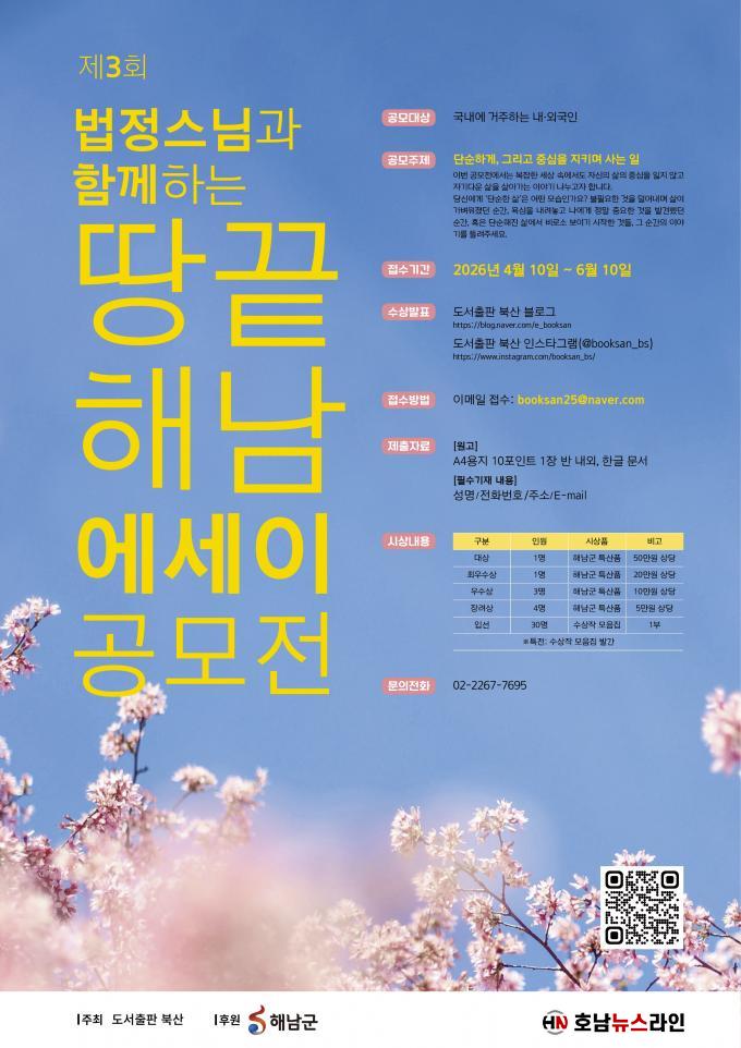 ÇØ³²±ºÀº ¡°¹ýÁ¤½º´ÔÀÇ °¡¸£Ä§Ã³·³ ´ú¾î³¿À» ÅëÇØ ¿ÀÈ÷·Á ´õ dz¿ä·Î¿öÁö´Â »îÀÇ °¡Ä¡¸¦ ¸¹Àº À̵é°ú ³ª´©°íÀÚ ÇÑ´Ù¡±¸ç ¡°À̹ø °ø¸ð¸¦ ÅëÇØ ÇØ³²ÀÇ ¹®ÈÀû °¡Ä¡¸¦ ÀçÁ¶¸íÇϰí, ¹ýÁ¤ ½º´ÔÀÇ ¹«¼ÒÀ¯ Á¤½ÅÀÌ ³Î¸® È®»êµÇ±â¸¦ ±â´ëÇÑ´Ù¡±°í ¹àÇû´Ù.