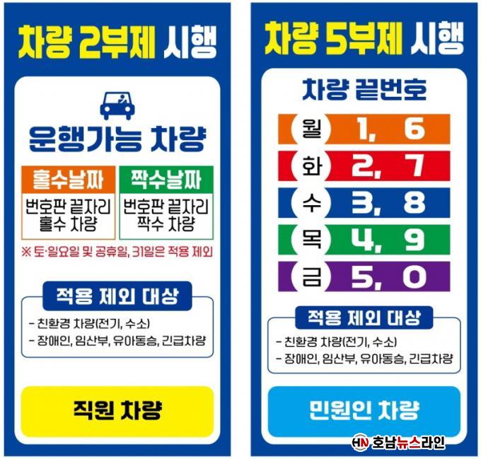 ½Â¿ëÂ÷ 5ºÎÁ¦´Â µµÃ»À» ¹æ¹®ÇÏ´Â ¹Î¿øÀÎ Â÷·®°ú °ø¿µÁÖÂ÷Àå¿¡ Àû¿ëµÈ´Ù. Â÷·®¹øÈ£ ³¡ÀÚ¸®¿¡ µû¶ó ÇØ´ç ¿äÀÏ¿¡´Â ÃâÀÔ ÀÌ Á¦ÇѵǸç, ¿äÀϺ° Àû¿ë ±âÁØÀº ¡ã¿ù¿äÀÏ 1¡¤6 ¡ãÈ¿äÀÏ 2¡¤7 ¡ã¼ö¿äÀÏ 3¡¤8 ¡ã¸ñ¿äÀÏ 4¡¤9 ¡ã±Ý¿äÀÏ 5¡¤0ÀÌ´Ù.