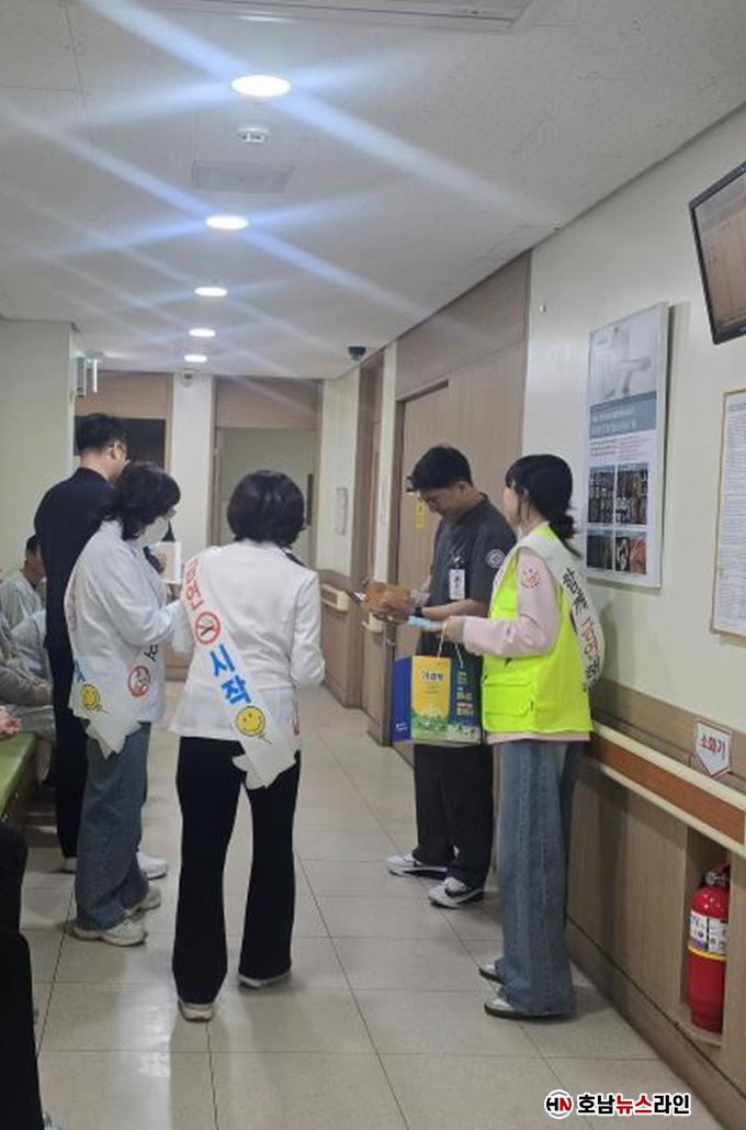 À̹ø Ä·ÆäÀο¡´Â °ø¹«¿ø, ÀÇ·áÀÎ, Áö¿ªÁֹΠµî ¾à 100¿© ¸íÀÌ Âü¿©ÇØ º´¿ø°ú ¿ÜºÎ ÁÖ¿ä µ¿¼±¿¡ ±Ý¿¬ È«º¸ Ȱµ¿À» ÆîÄ¡°í, ±Ý¿¬ ¾È³»¹® ¹èºÎ¿Í °èµµ Ȱµ¿À» º´ÇàÇÏ¸ç ±Ý¿¬¹®È È®»ê¿¡ Èû½è´Ù.