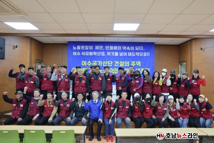 ¹Î È帴 ¡°¿©¼ö»ê´Ü¿¡ ¹æ¹®ÇØ ÇöÀåÀÇ ¸ñ¼Ò¸®¸¦ µéÀ¸´Ï »óȲÀÌ ¸Å¿ì ¹«°Ì°í ÂøÀâÇÏ´Ù¡±¸é¼ ¡°¿À´Ã ÁֽЏ»¾¸À» Àß ¹Þ¾Æ °ø½ÄÀûÀÎ °ø¾à°ú ¾à¼ÓÀ¸·Î ¸¸µé¾î³»°Ú´Ù¡±°í ¸»Çß´Ù. ÀÌ¾î ¡°¼®À¯ÈÇÐ »ê¾÷ÀÇ °æÀï·ÂÀ» »ì¸®°í, ³ëµ¿ÀÚµéÀÇ »îÀ» ÇÔ²² Áöų ¼ö ÀÖ´Â ÇØ¹ýÀ» ²À ã°Ú´Ù¡±°í °Á¶Çß´Ù.