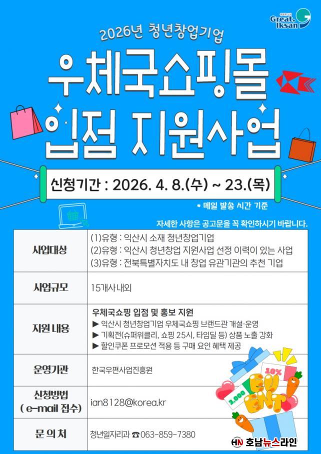ÀÍ»ê½Ã´Â '2026³â û³ââ¾÷±â¾÷ ¿ìü±¹¼îÇθô ÀÔÁ¡ Áö¿ø»ç¾÷'¿¡ Âü¿©ÇÒ Ã»³ââ¾÷±â¾÷À» ¿À´Â 23ÀϱîÁö ¸ðÁýÇÑ´Ù.