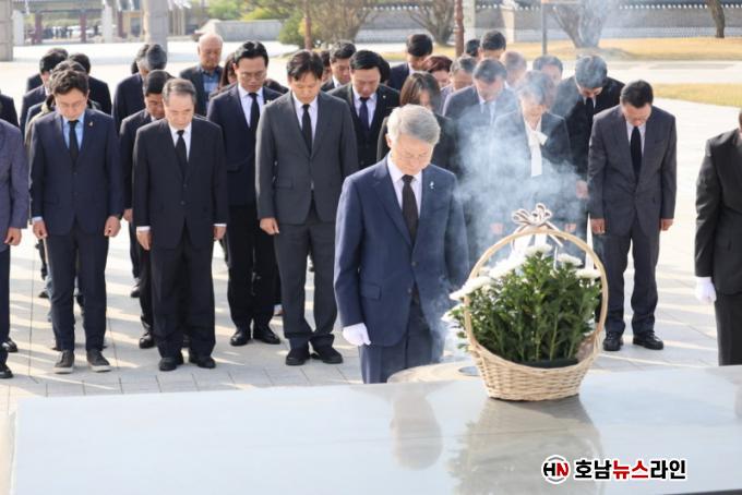 À̳¯ ±¹¸³5¡¤18¹ÎÁÖ¹¦Áö Âü¹è¸¦ ½ÃÀÛÀ¸·Î °ø½Ä ÀÏÁ¤À» ½ÃÀÛÇÑ ¹Î È帴 ¡°¿À¿ù Á¤½ÅÀ» ¿À´ÃÀÇ ¹ÎÁÖÁÖÀÇ¿Í Áö¿ª ¹ßÀüÀ¸·Î À̾°Ú´Ù¡±¸ç ¡°Àü³²±¤ÁÖ¸¦ Á¤ÀÇ¿Í ¿¬´ë, ±×¸®°í ¼ºÀåÀÇ Á᫐ µµ½Ã·Î ¸¸µé¾î°¡°Ú´Ù¡±°í °Á¶Çß´Ù.
