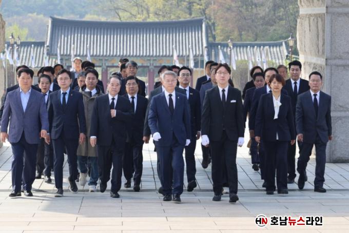 ¹Î È帴 À̳¯ À±»ó¿ø ¿»ç ¹¦¿ªÀ» ã¾Æ Âü¹èÇÑ µÚ ±âÀÚµé°ú ¸¸³ª ¡°¿À¿ù Á¤½Å°ú ´ëµ¿ Á¤½ÅÀ» Àü³²±¤ÁÖ ÅëÇÕÀÇ ÇÙ½É °¡Ä¡·Î »ï°Ú´Ù¡±¸ç ¡°5¿ù ¿µ·ÉÀÇ ¶æÀ» °áÄÚ ÀØÁö ¾Ê°Ú´Ù¡±°í ¹àÇû´Ù.