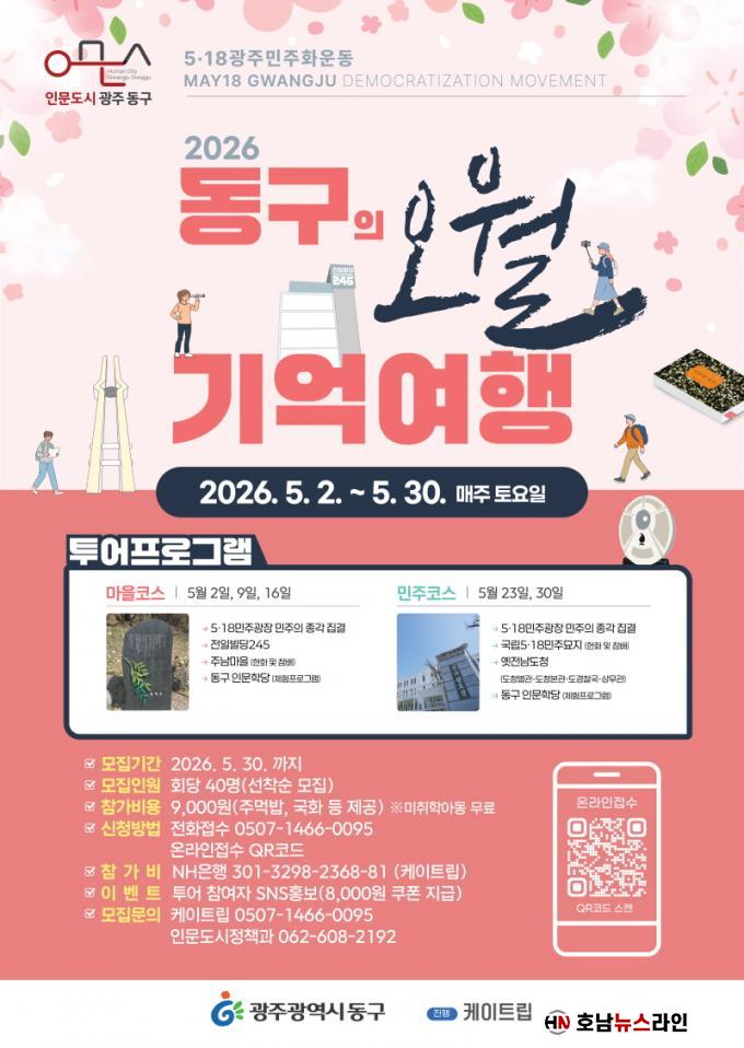 À̹ø ÇÁ·Î±×·¥Àº 5¿ù 2ÀϺÎÅÍ 30ÀϱîÁö ¸ÅÁÖ Åä¿äÀÏ ÃÑ 5ȸ ÁøÇàµÇ¸ç, ȸ´ç 40¸í¾¿ ÃÑ 200¸íÀ» ¸ðÁýÇÑ´Ù. Âü¿© ½Ã¹ÎµéÀº ¹®ÈÇØ¼³»çÀÇ ¾È³»¸¦ ¹ÞÀ¸¸ç µ¿±¸ °ü³» 5¡¤18 ÁÖ¿ä »çÀûÁö¸¦ µÑ·¯º¸´Â ½Ã°£À» °®´Â´Ù.