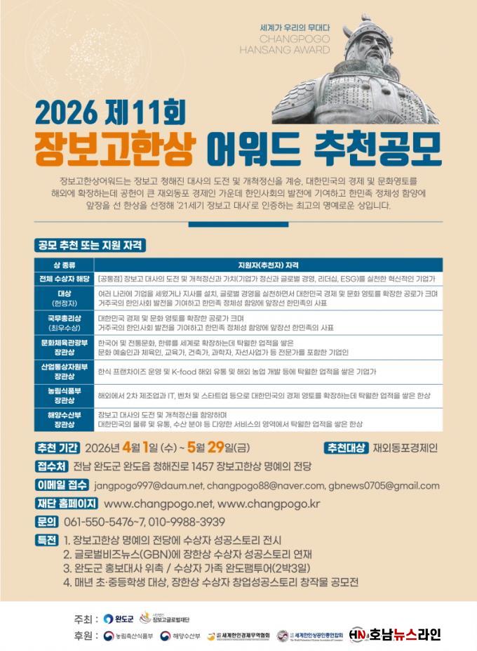 Ãßõ ±â°£Àº 5¿ù 29ÀϱîÁö´Ù. ÃßõÀº À庸°í±Û·Î¹úÀç´Ü, À庸°íÇÑ»ó ¸í¿¹ÀÇ Àü´ç ´©¸®Áý, ±Û·Î¹ú ºñÁî´º½º(www.gbnews.kr)¿¡¼ ¡®À庸°í ÇÑ»ó ¾î¿öµå¡¯ Èĺ¸ÀÚ Ãßõ¼¸¦ ³»·Á¹Þ¾Æ ÀÛ¼ºÇÑ µÚ À̸ÞÀÏ(jangpogo12@naver.com)·Î ÇÏ¸é µÈ´Ù.