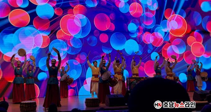 20ÀÏ ¿©¼ö ¿¢½ºÆ÷Ȧ¿¡¼ ¿¸° ±¹Á¦ÁÖ°£ °³È¸½Ä¿¡¼± ±¹¾Ç ¿¹¼ú´Ü¿ø 50¸íÀÌ ´ë±Ô¸ð·Î Ãâ¿¬ÇØ Ä¡À¯¿Í »ó»ýÀÇ ¸Þ½ÃÁö¸¦ ´ã°í ÀÖ´Â Çö´ëÀû °¨°¢ÀÇ ±¹¾Ç°ú Ÿ¹«¾ÇÀÇ Èï°Ü¿î ÆÛÆ÷¸Õ½º¸¦ ¼±º¸À̸ç Å« È£ÀÀÀ» ¾ò¾ú´Ù.