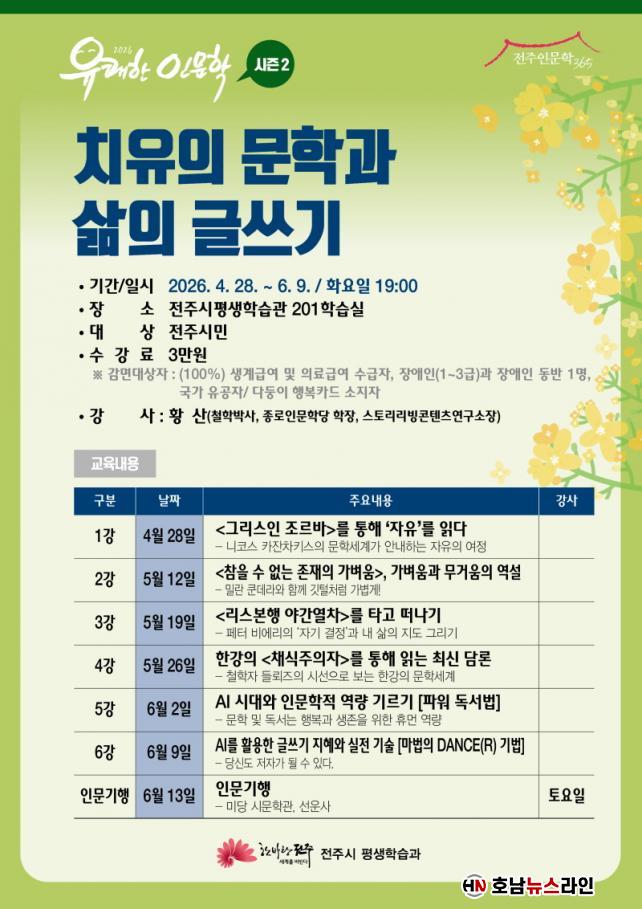 ÀüÁÖ½ÃÆò»ýÇнÀ°üÀº ½Ã¹ÎµéÀÌ Àι®ÇÐÀ» »êÃ¥ÇÏµí ½±°Ô Á¢ÇÒ ¼ö ÀÖµµ·Ï ¿À´Â 27ÀϺÎÅÍ 6¿ù 23ÀϱîÁö ¸ÅÁÖ ¿ù¿äÀϰú È¿äÀÏ ¿ÀÈÄ 7½Ã ¡®À¯ÄèÇÑ Àι®ÇС¯ ÇÁ·Î±×·¥À» ¿î¿µÇÑ´Ù.