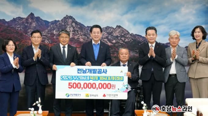Àü³²°³¹ß°ø»ç´Â Áö¿ª»çȸ ȯ¿øÀ» À§ÇØ ¸Å³â ¼øÀÌÀÍÀÇ ÀÏÁ¤ ºñÀ²À» »çȸ°øÇå¿¡ ÅõÀÚÇϰí ÀÖÀ¸¸ç, ¿ÃÇØ´Â ÃÑ 26¾ï ¿ø ±Ô¸ðÀÇ ±âºÎ¸¦ ÃßÁøÇÑ´Ù. ƯÈ÷ ¡®¿ì¸®µ¿³× º¹Áö±âµ¿´ë¡¯¿¡´Â 4³â° ±âŹÀ» À̾î¿À¸ç ´©Àû 18¾ï ¿øÀ» Áö¿øÇØ »çȸÃë¾à°èÃþ »ýȰºÒÆí °³¼±°ú »ýȰ¾ÈÁ¤ Áö¿ø¿¡ ÈûÀ» º¸Å°í ÀÖ´Ù.