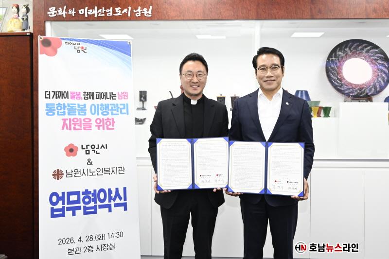 ½Ã´Â 4¿ù 28ÀÏ(È) ½Ãû ½ÃÀå½Ç¿¡¼ ³²¿ø½Ã³ëÀκ¹Áö°ü(°üÀå ÀåÁø¼®)°ú ¡®ÅëÇÕµ¹º½ ÀÌÇà°ü¸® Áö¿øÀ» À§ÇÑ ¾÷¹«Çù¾à¡¯À» ü°áÇß´Ù.