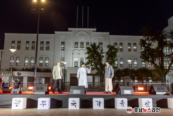 ¼ºº®ÀÌ »ç¶óÁö°í Å͸¸ ³²Àº ±¤ÁÖÀ¾¼ºÀº ºûÀ» Ȱ¿ëÇÑ ¿¬Ãâ·Î »õ·Ó°Ô ÀçÇöµÆ´Ù. ¡®ÇÔ²² °È´Â À¾¼º±æ¡¯Àº ¼º°ûÀ» ºûÀ¸·Î Çü»óÈÇØ ¾ßÇàÀÇ ´ëÇ¥ ¾ß°£ ¸í¼Ò·Î ÀÚ¸® Àâ¾Ò´Ù.